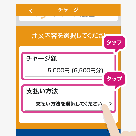 「チャージ額」と「支払い方法」を選択