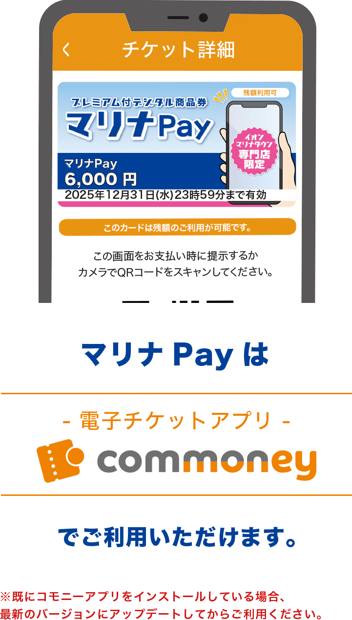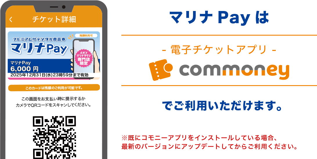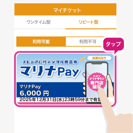 アプリ内マイチケットから利用する「マリナPay」をタップ