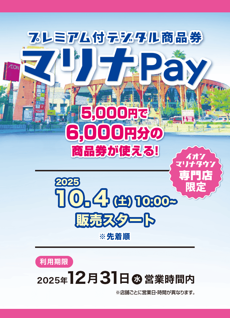 福岡県福岡市西区にあるイオンマリナタウンの専門店で使える