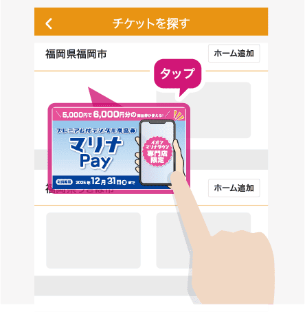 福岡県福岡市の欄から「マリナPay」の購入バナーをタップ