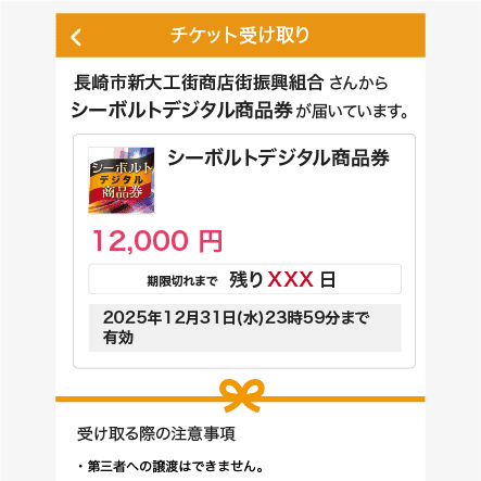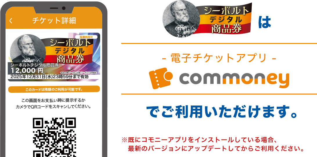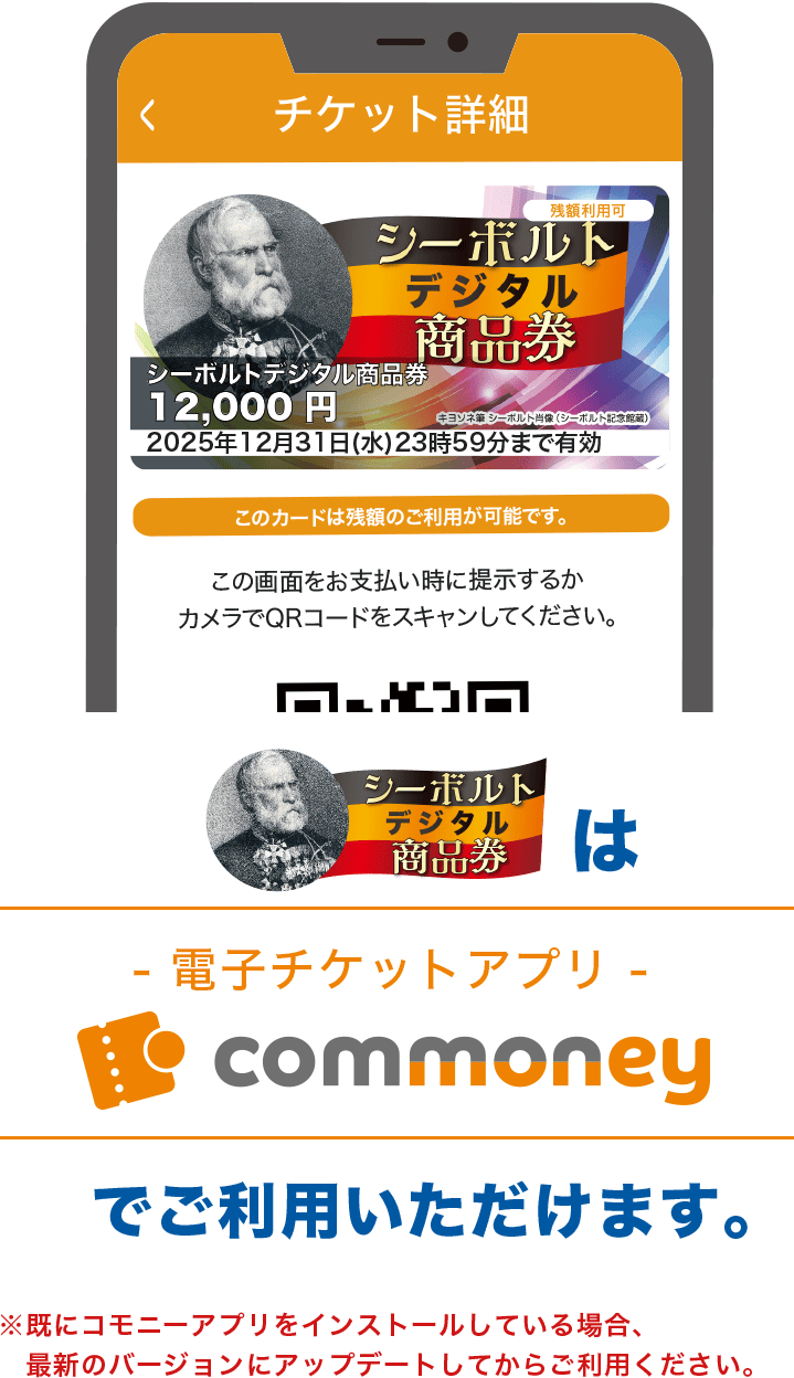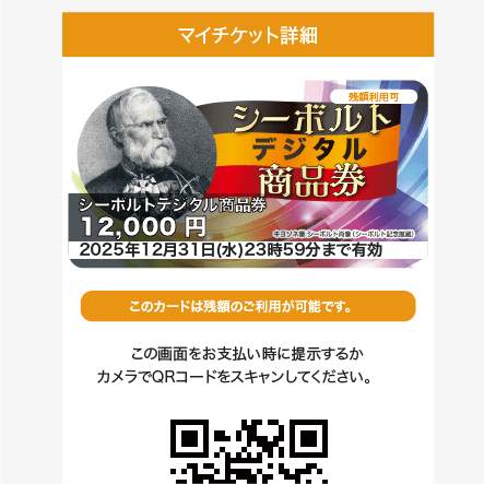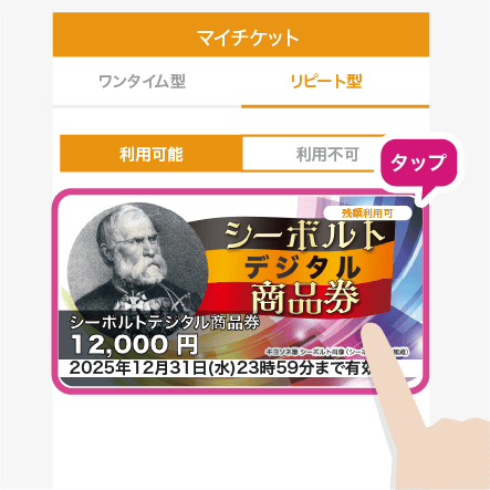 アプリ内マイチケットから「シーボルトデジタル商品券」を選択します。