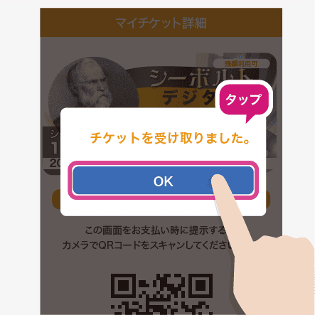 マイチケットに受け取った「シーボルトデジタル商品券」が表示されたら完了