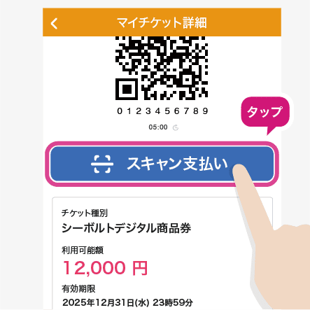 マイチケットから取り込んだ「シーボルトデジタル商品券」をタップ