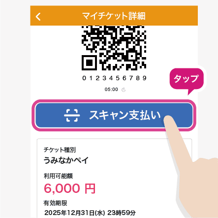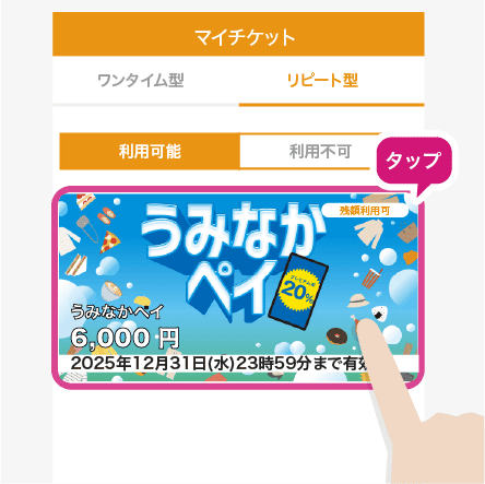 ホーム画面の「うみなかペイ」の購入バナーをタップ