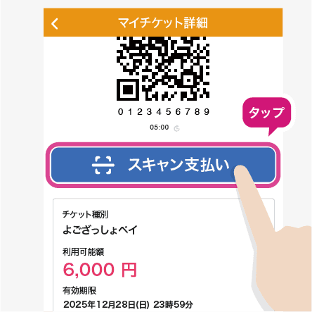 「スキャン支払い」をタップ