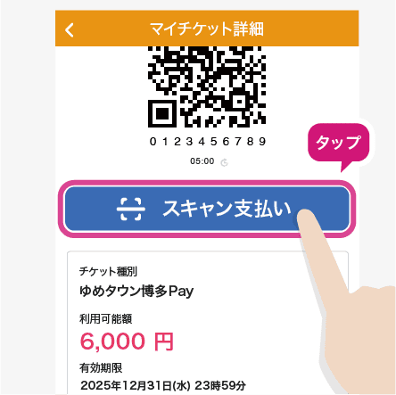 マイチケットから購入した「ゆめタウン博多Pay」をタップ
