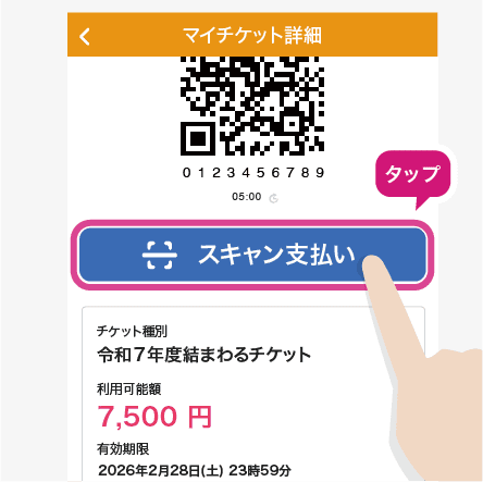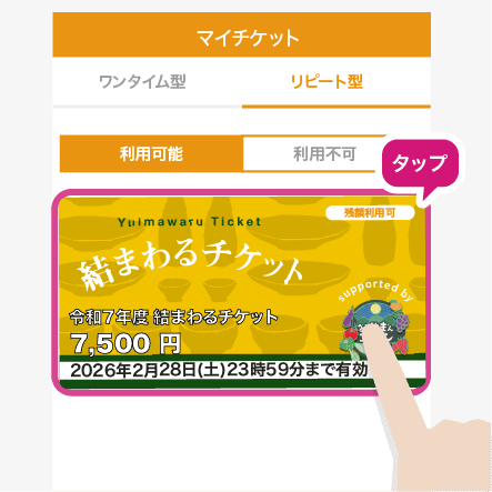 マイチケットから購入した「令和7年度 結まわるチケット」をタップ