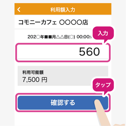 お店の人と一緒に金額を確認し「決済する」をタップ