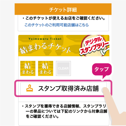 結まわるチケットを利用すると、1店舗ごとに1スタンプをGET