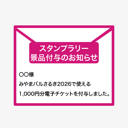 | 景品の受け取り方法 | みやまバルさるき2026開催日9:00にメール通知と電子チケットをプレゼント |